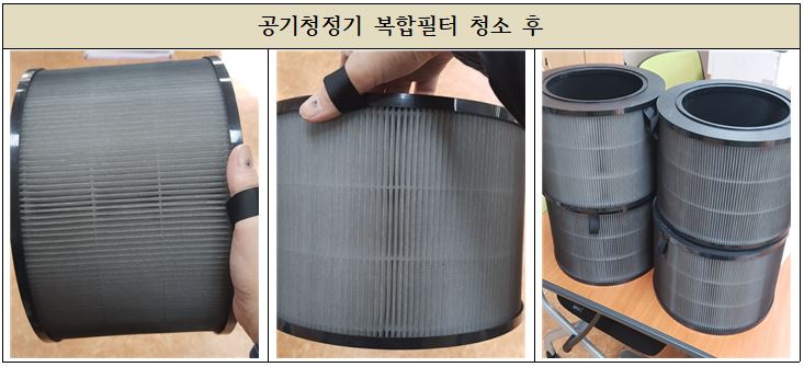공기청정기들의 헤파필터와 더불어 기기점검 및 청소 서비스를 진행 하였고