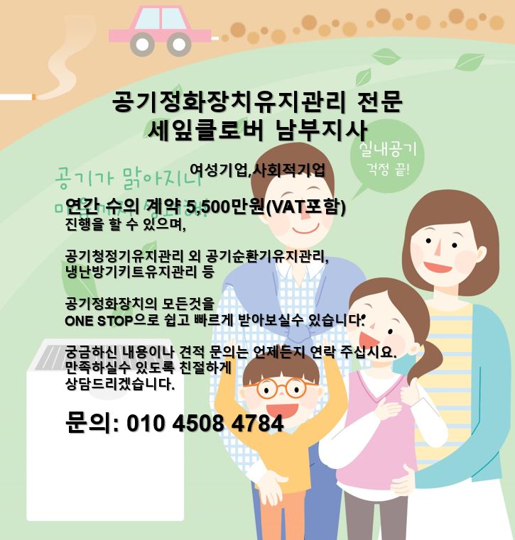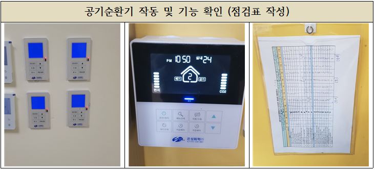 경기도 교육청 지침에 의하면 공기순환기는 연10회점검 2회 필터교체를 권고하고 있으며