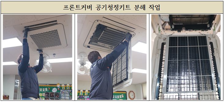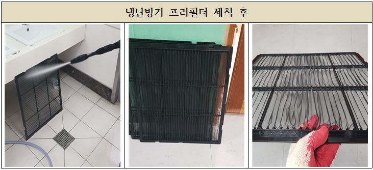 고압세척과 건조 광촉매필터 청소 순으로 작업을 진행 하였으며