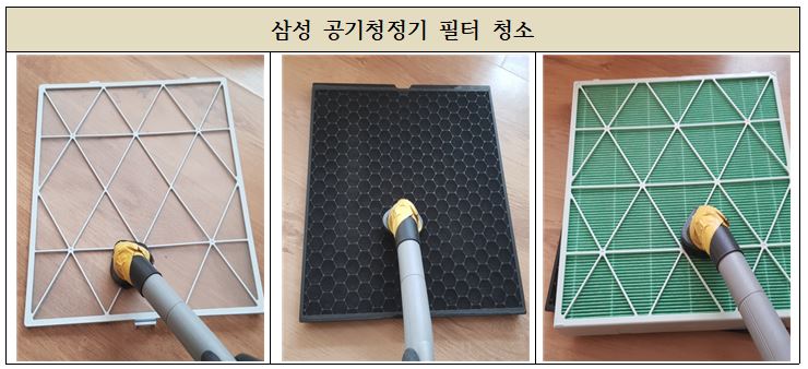 공기청정기의 내외부 먼지제거 작업도 진행 하였습니다.