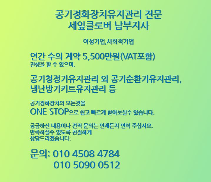 다음 유지관리 서비스때 공기순환기와 공기청정기의