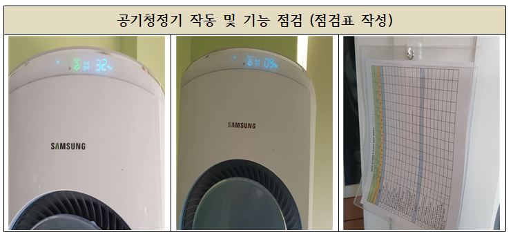 작업을 진행 하며 새학기가 시작되기 전에 공기청정기 현황 파악도 해드렸습니다.
