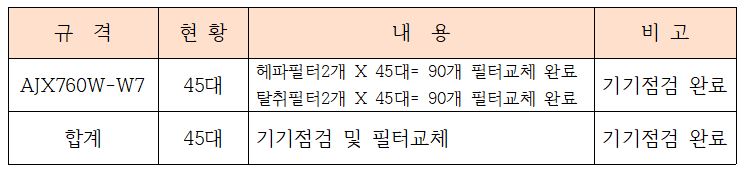 미세먼지와 여러 유해물질로 오염된 필터는 모두 새필터로 교체 진행 하였습니다.