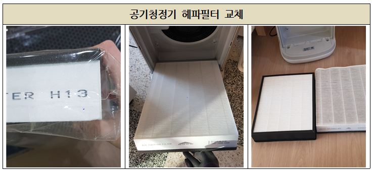 특별실의 공기청정기 복합필터들을 모두 교체 하였습니다.