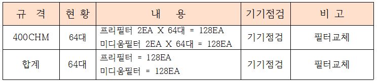 오염된 미디움필터와 프리필터를 교체 해주었으며