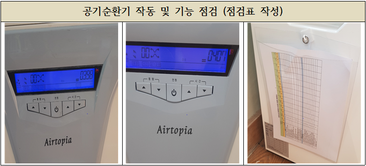 경기도 교육청 지침에 의거한 공기정화장치 점검표를