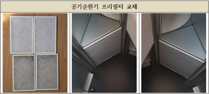 가교실에 비치해주고 공기순환기 필터교체 작업을 마무리 하여습니다.