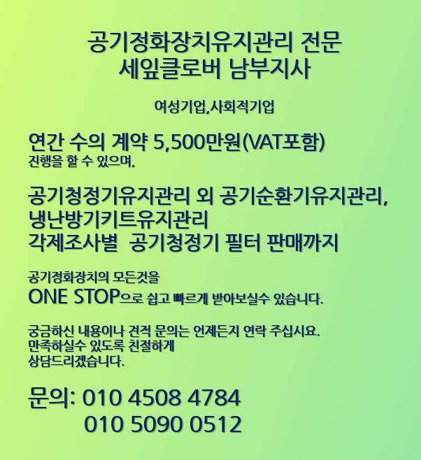 모든 공기정화장치의 유지관리가 가능 합니다.
