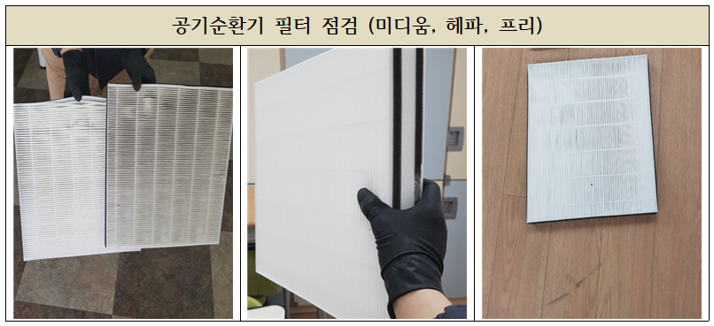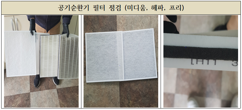 기기 작동 유무, 필터 점검, 급배기구 점검으로 작업이 진행되었습니다.
