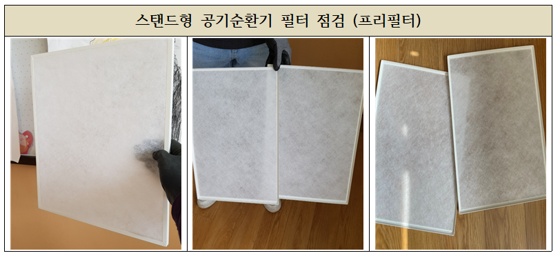 작업은 기기의 작동유무와 함께 필터의 상태, 급배기구 점검을 하고