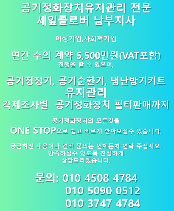 작업내용은 기기점검과 필터 점검 및 청소, 급배기구 점검,