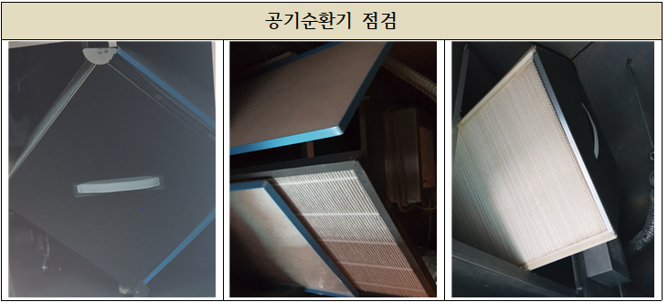 천정형 고기순환기와 공기처정기 두가지의 유지관리 작업을 진행 하였으며