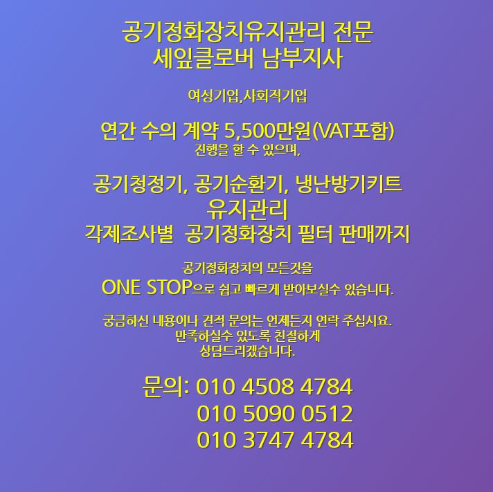 두가지 이상의 공기정화장치 유지관리를 맏겨 주고 있는 상황입니다.