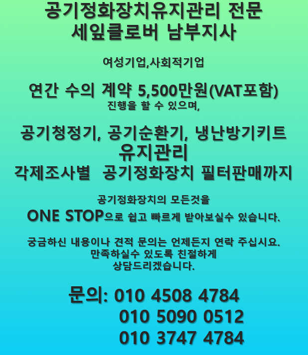 당사는 모든 공기정화장치를 원스톱으로 유지관리가 가능한 점에서