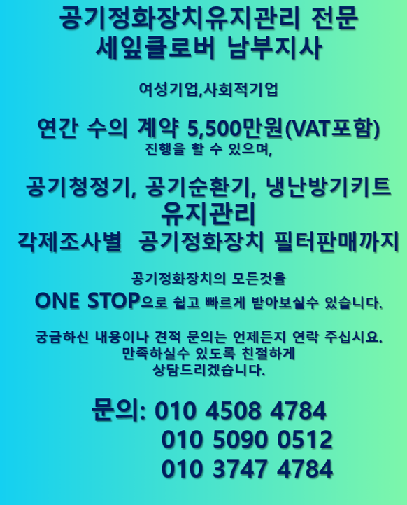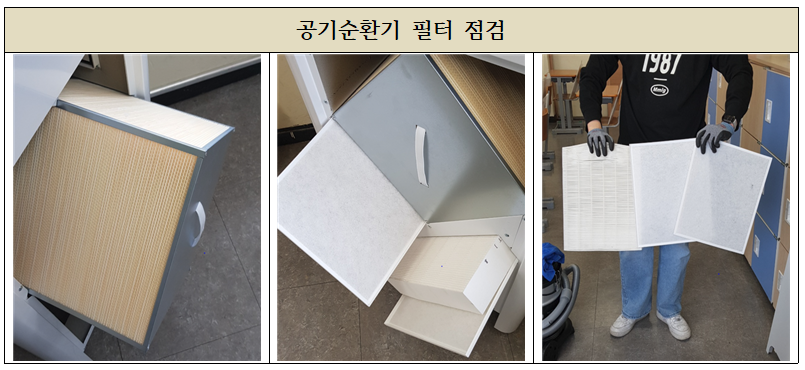 공기순환기는 기기 및 필터 점검, 급배기구 점검, 소독작업을 진행하였습니다.