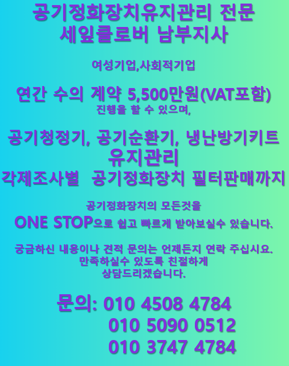 숨터 공기순환기, LG공기청정기, 천정형 공기순환기 종합 유지관리 서비스. 문♣초등학교