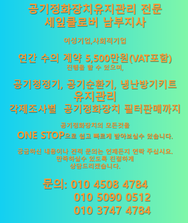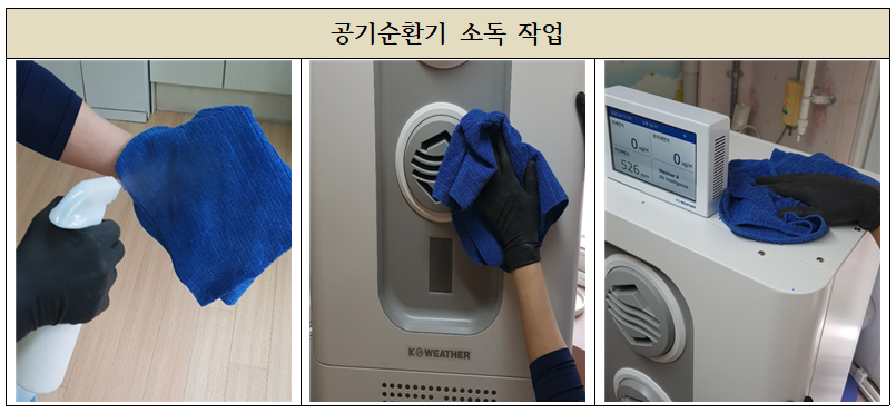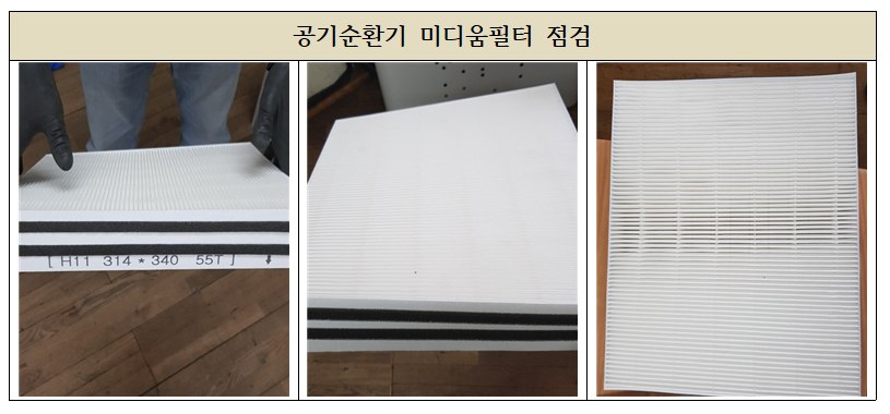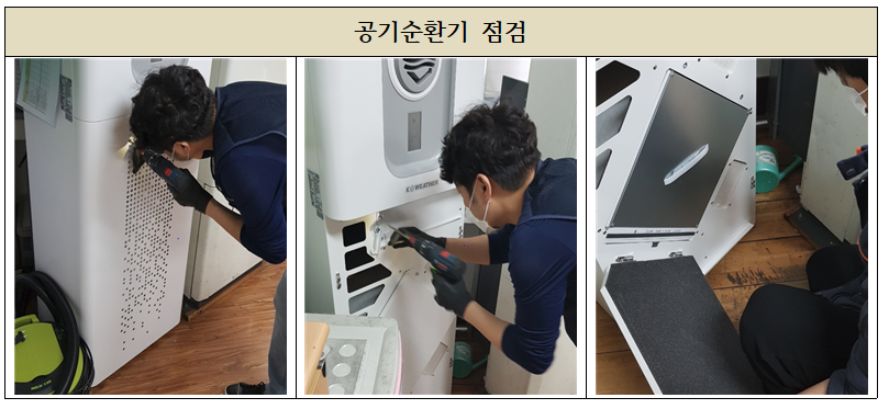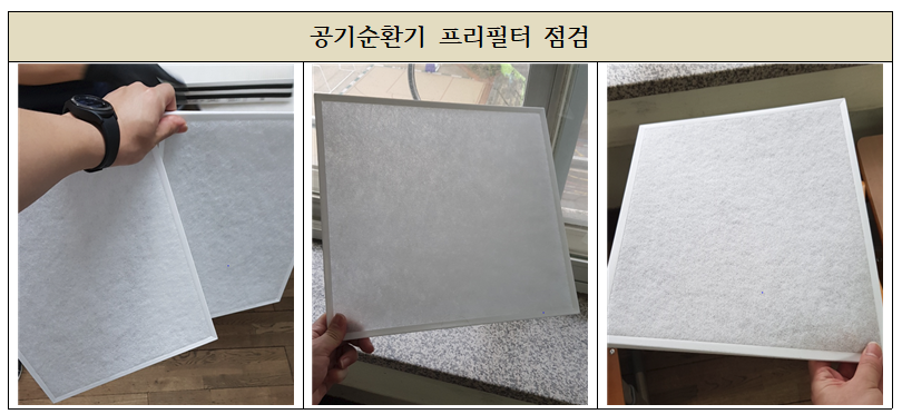 기기 및 필터점검과 소독작업, 급배기구점검, 작동점검 후 점검표를