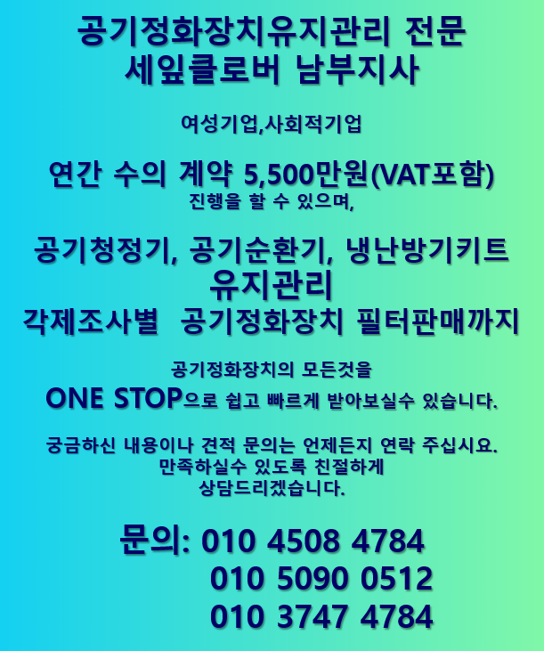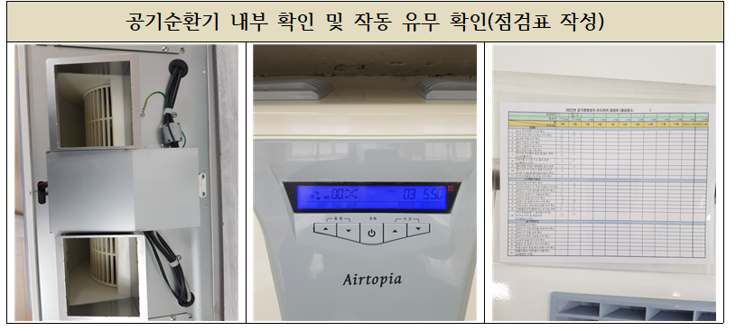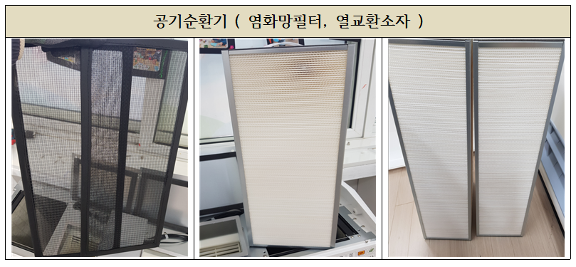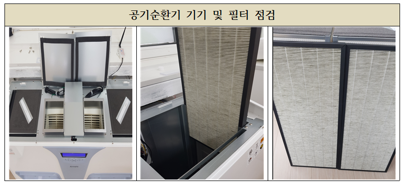 작업은 기기 및 필터 점검과 청소 후 소독작업을 하고 작동 및 기능점검을 하였습니다.