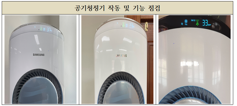 공기청정기의 기기 및 필터 점검, 청소, 소독작업 후