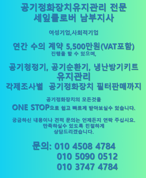오늘은 공기청정기와 공기순환기(스탠드형, 천정형) 유지관리를 다녀왔습니다.