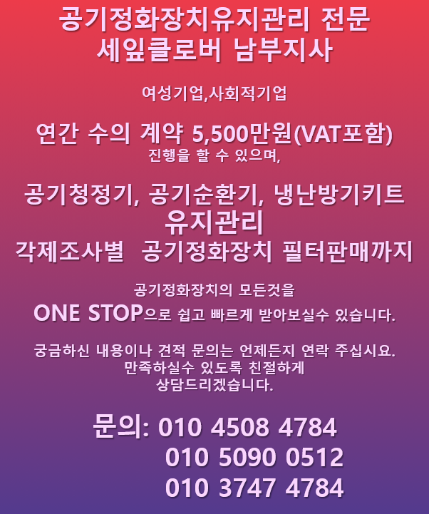 기기 및 필터 점검과 청소 후 전체적인 소독작업을 실시해주었습니다.