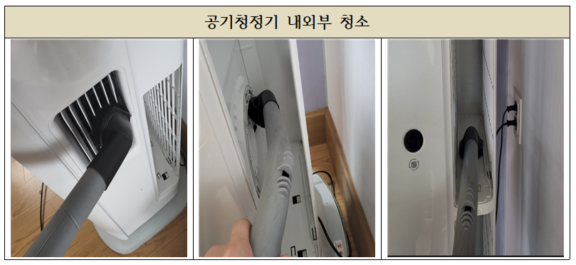 공기청정기는 기기 및 필터 점검과 청소 후 전체 소독을 진행하고