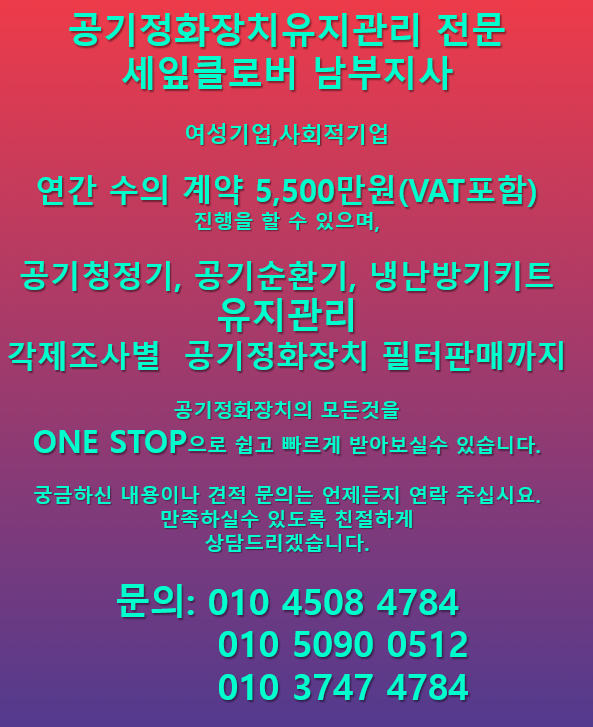 공기청정기와 천정형 공기순환기 유지관리 점검을 다녀왔습니다.