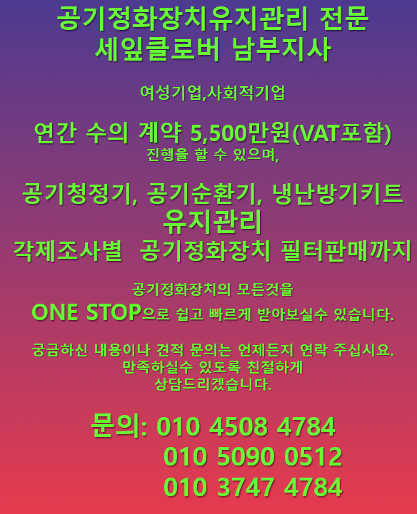 오늘은 플랜제로사의 바닥상치형 공기순환기를 유지관리하였습니다.