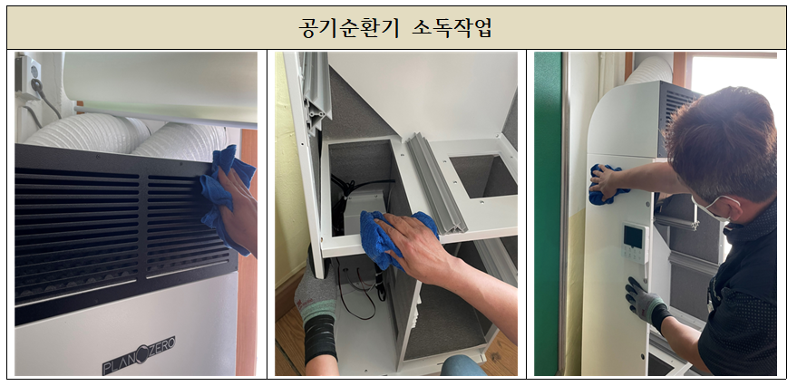 점검 후 청소작업 및 소독작업 진행하였습니다.