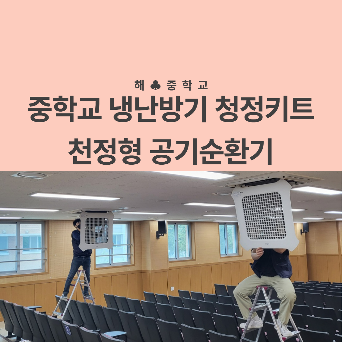오늘 작업은 냉난방기 공기청정키트와 천정형 공기순환기 유지관리입니다.