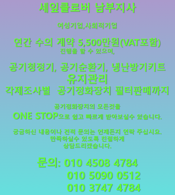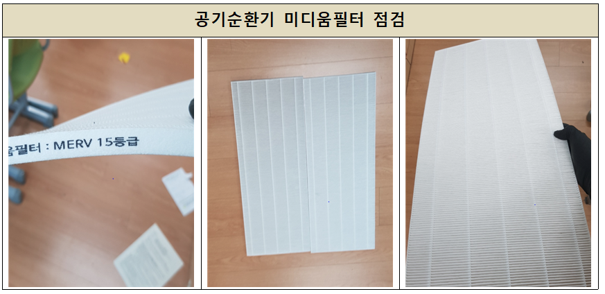 모든 공기정화장치 작동 및 기능점검을 하였습니다.