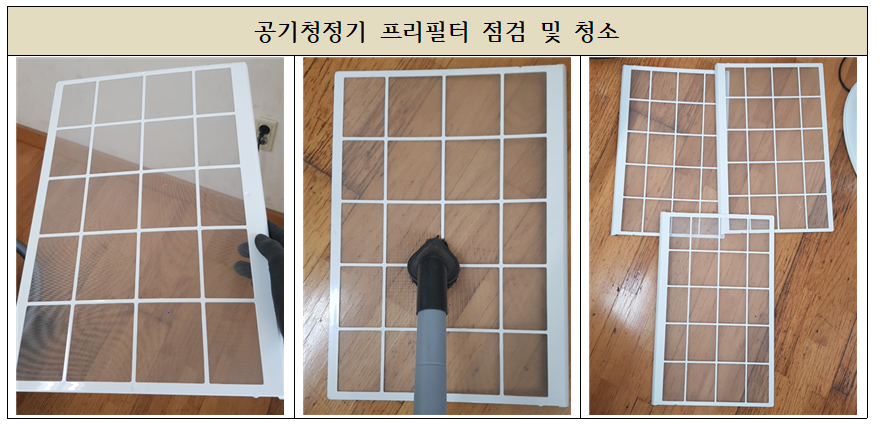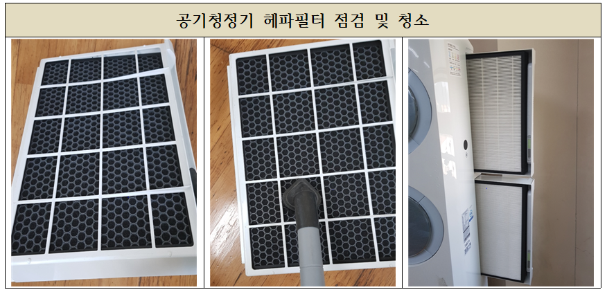 기기 점검 및 필터점검, 청소작업을 진행하고