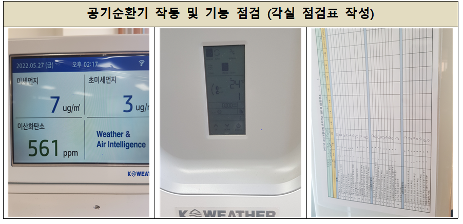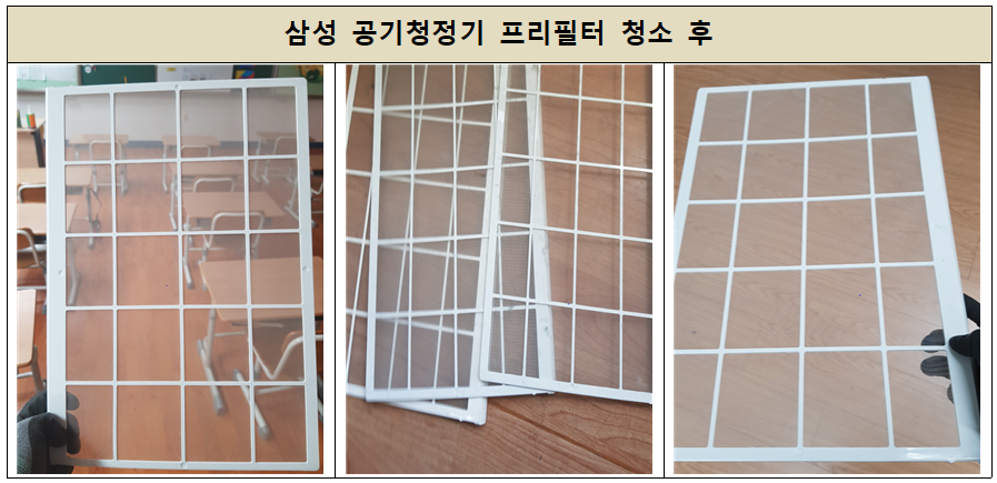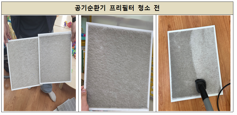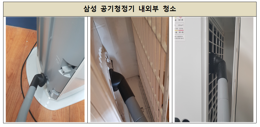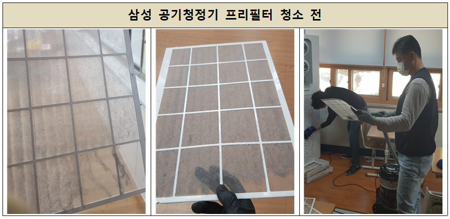 작업은 기기 점검 및 필터 점검 후 청소,