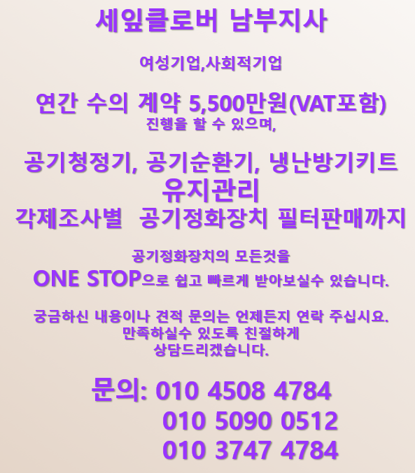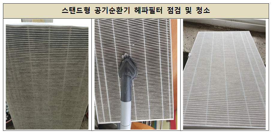 필터와 기기 점검 후 청소작업과 소독작업을 진행하였습니다.