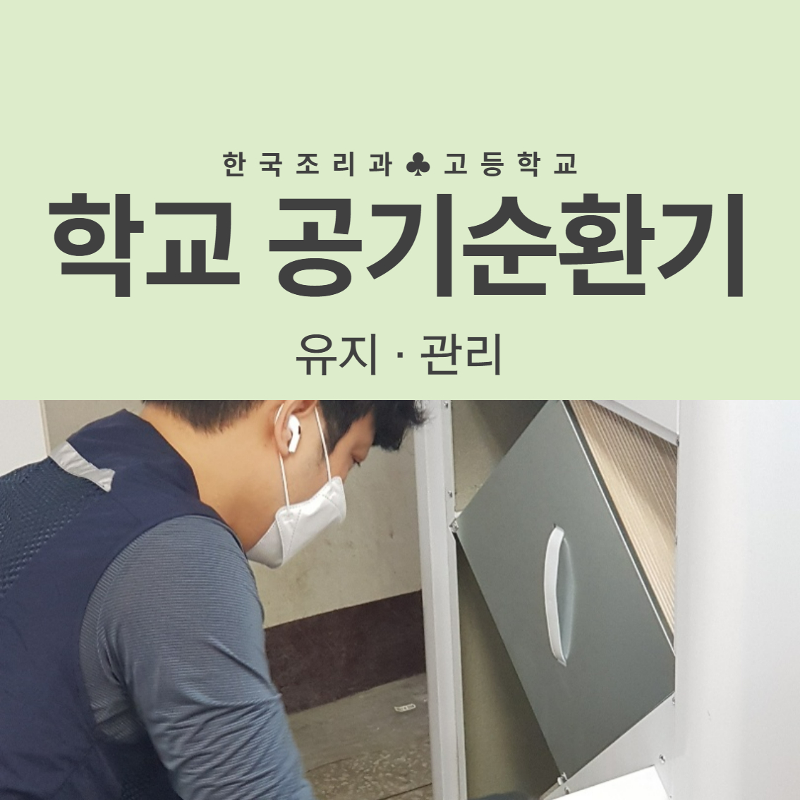 오늘은 공기정화장치의 점검을 위해 한 고등학교를 방문하였습니다.