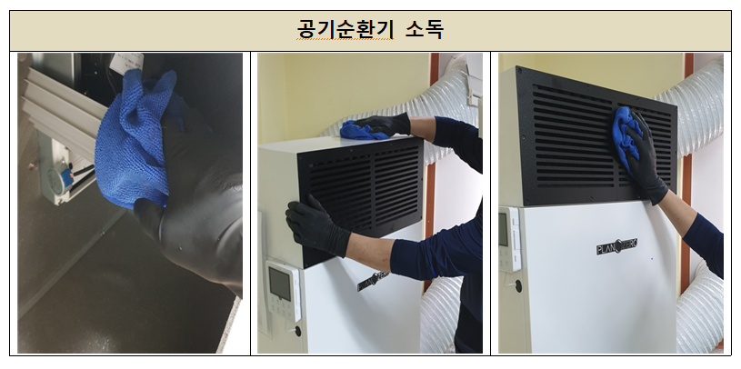 특이사항은 없이 사용량이 많아 필터 및 기기의 청소와 소독을 진행하였습니다.