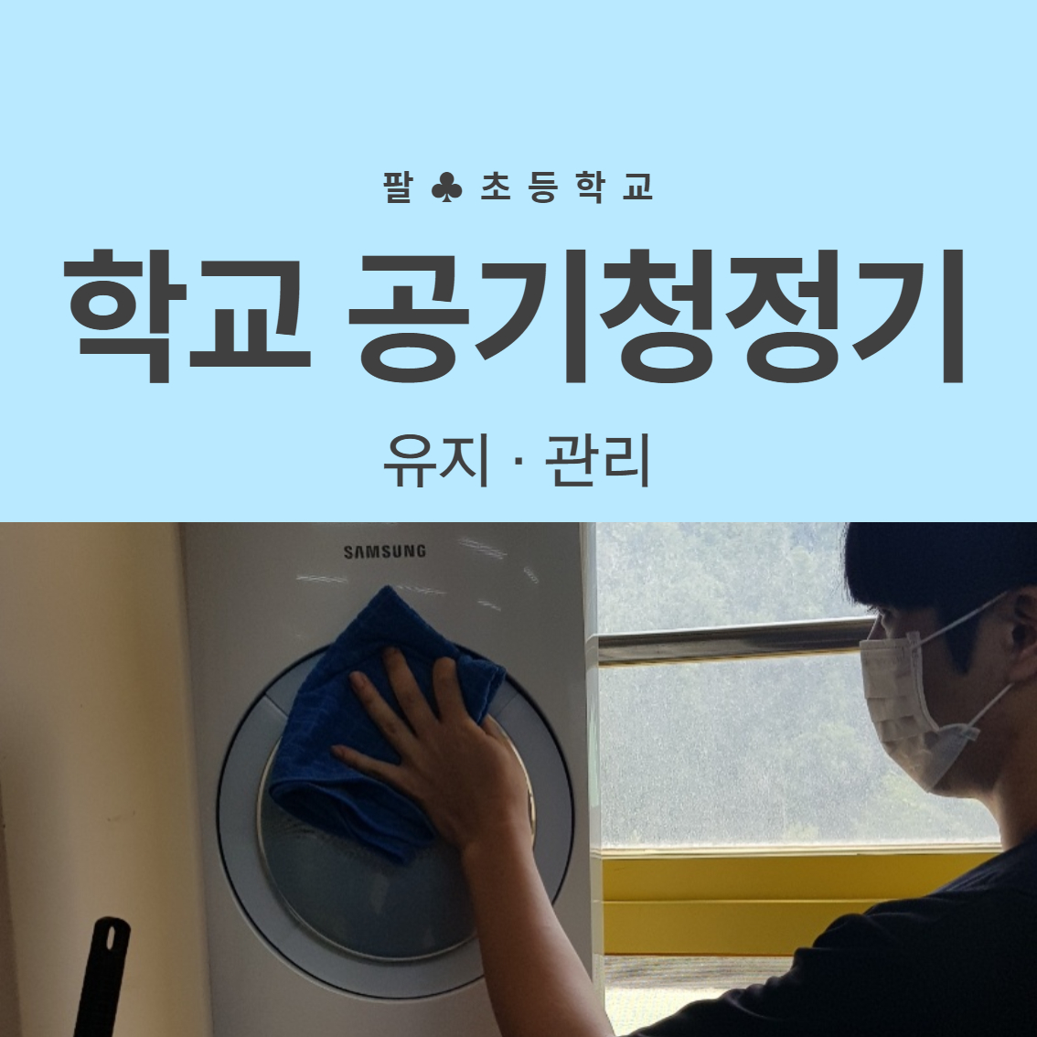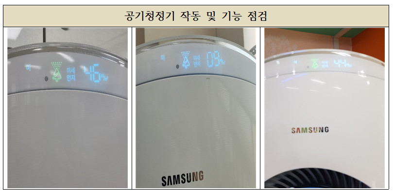 공기정화장치 초등학교 삼성 스탠드형 공기청정기 필터 유지보수. 팔○초등학교