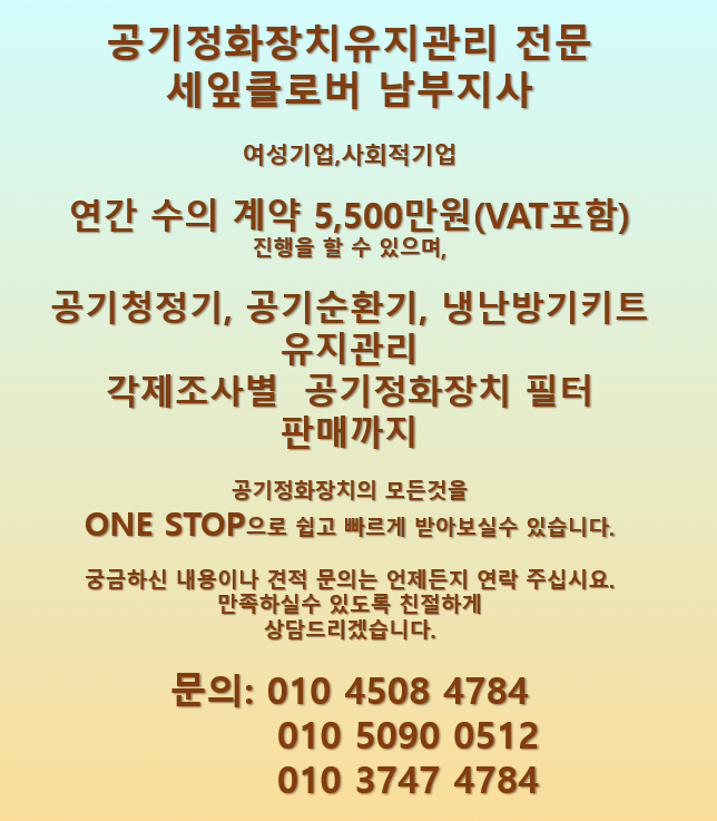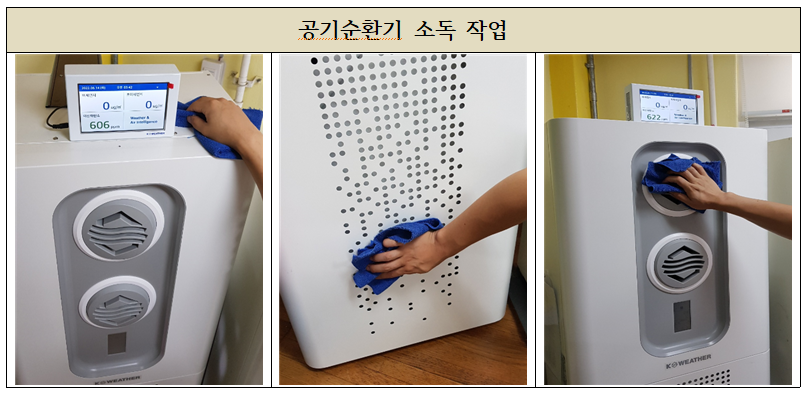 필터의 청소부터 소독 및 점검표까지 꼼꼼히 마무리 하였습니다.
