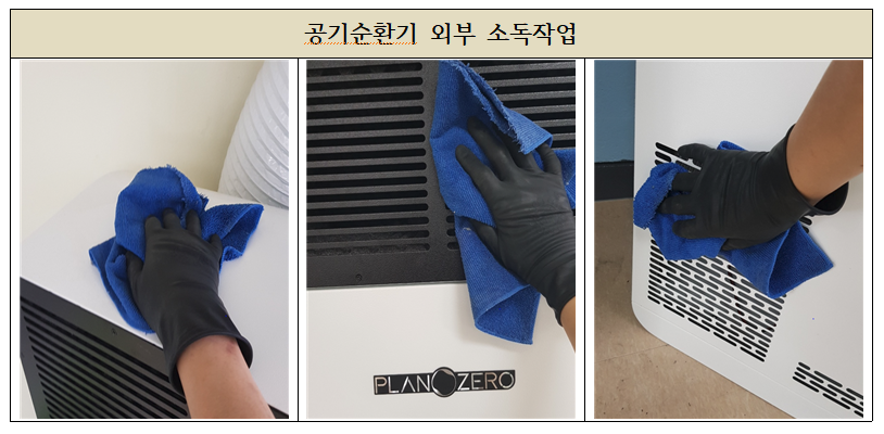 필터 상태와는 상관없이 기기의 각 부분들을 청소하였으며 마무리 작업인