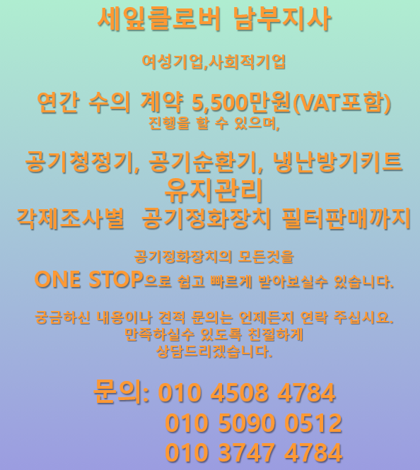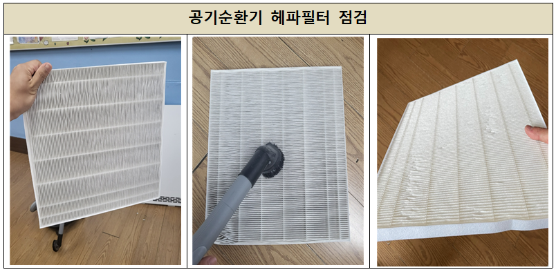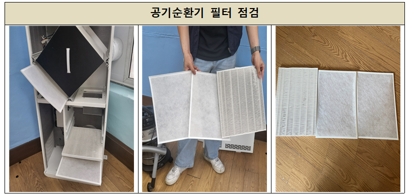 필터점검과 함께 기기점검 후 청소 및 소독작업을 진행하였습니다.
