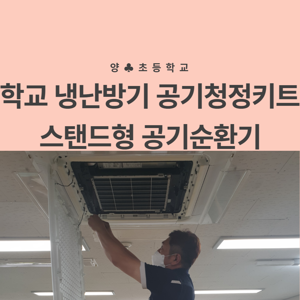 숨터 스탠드형 공기순환기와 LG 천장형 공기청정키트를 점검합니다.