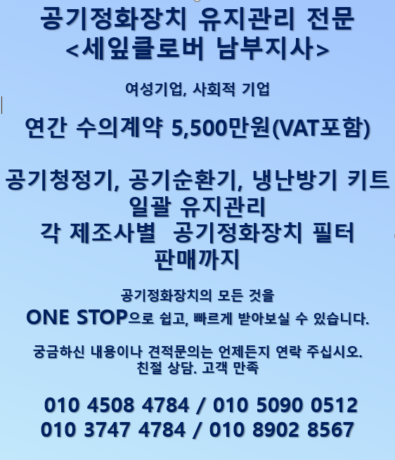 공기청정기를 비롯한 공기정화장치들의 정기점검에 있어서 필터 교체 작업이 많아집니다.