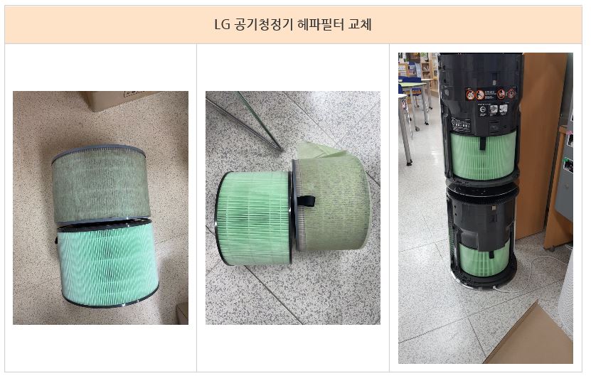 학교에 설치 되어 있는 모든 공기청정기의 필터를 교체 하면서