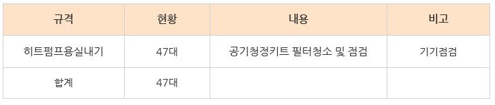 공기청정기유지관리 외 공기순환기유지관리, 냉난방기키트유지관리 등