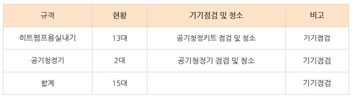 공기청정기유지관리 외 공기순환기유지관리, 냉난방기키트유지관리 등