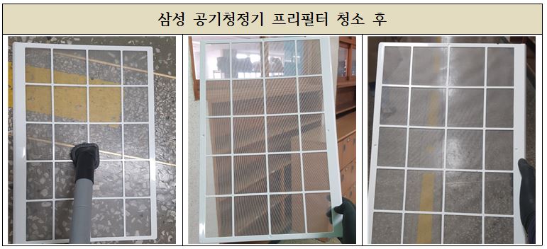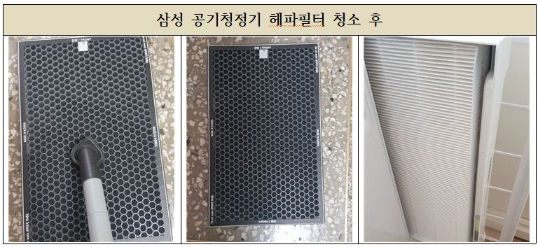기기점검 이외에 프리필터와 헤파필터 청소 그리고 공기청정기 틈틈히 끼여있던