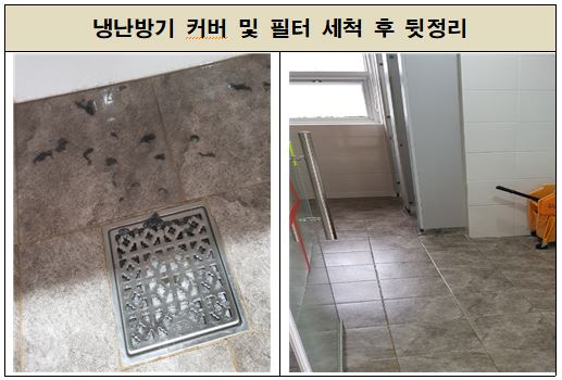 모든 냉난방기의 커버와 프리필터를 깨끗히 세척 완료 하였으며