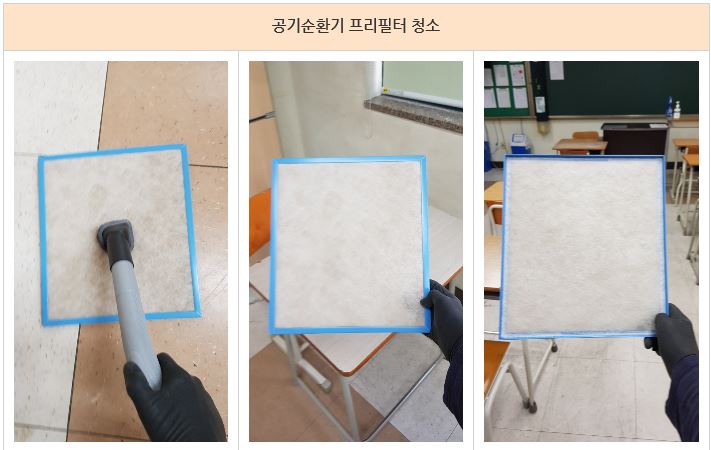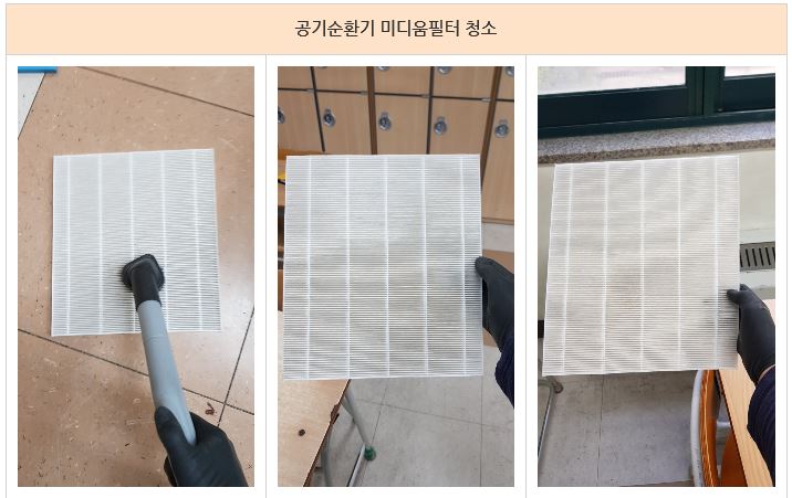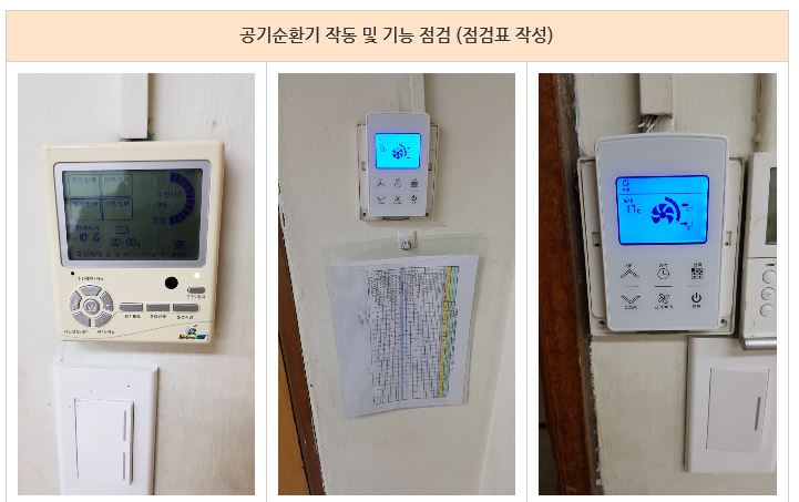 모든 공기순환기의 점검과 필터의 청소를 완료 하였습니다.