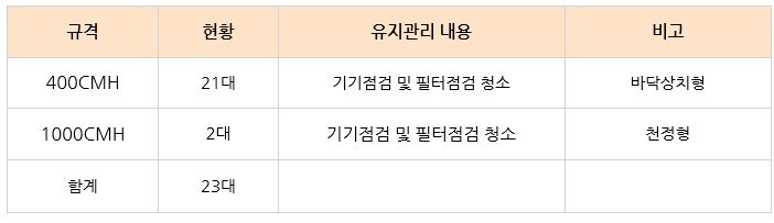 공기청정기유지관리 외 공기순환기유지관리, 냉난방기키트유지관리 등