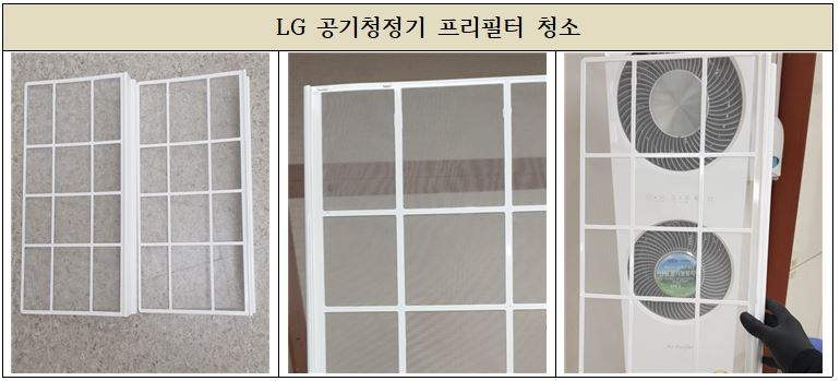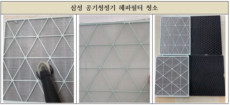공기청정기의 헤파필터와 프리필터 점검 및 청소 작업을 진행 하였으며
